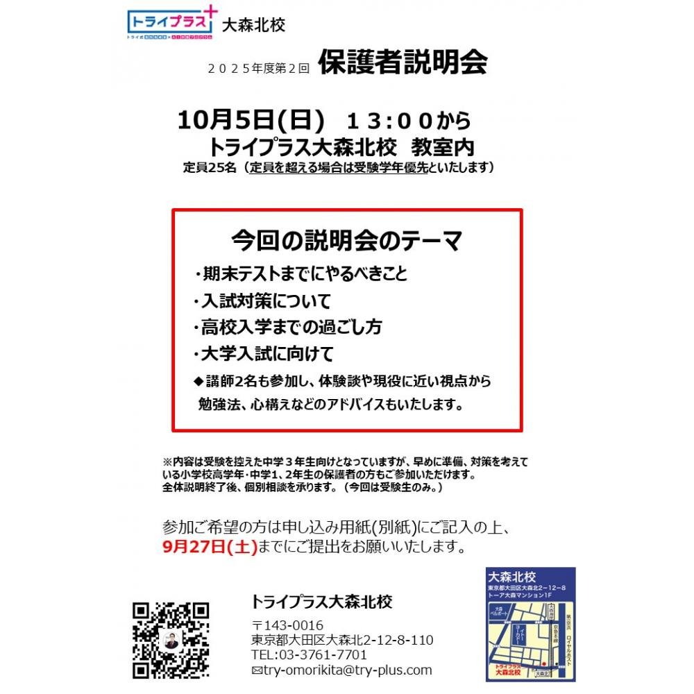 トライプラス大森北校は、勉強はもちろん”人としての成長”を大切に考えています。すべての講師は、生徒一人ひとりに寄り添い、”部活との両立”、”将来の夢の実現”のために日々コミュニケーションを取り、共有しています。それをもとに、勉強の進め方の習得、学習習慣の定着、苦手克服、成績向上、志望校合格に向け指導を行っています。