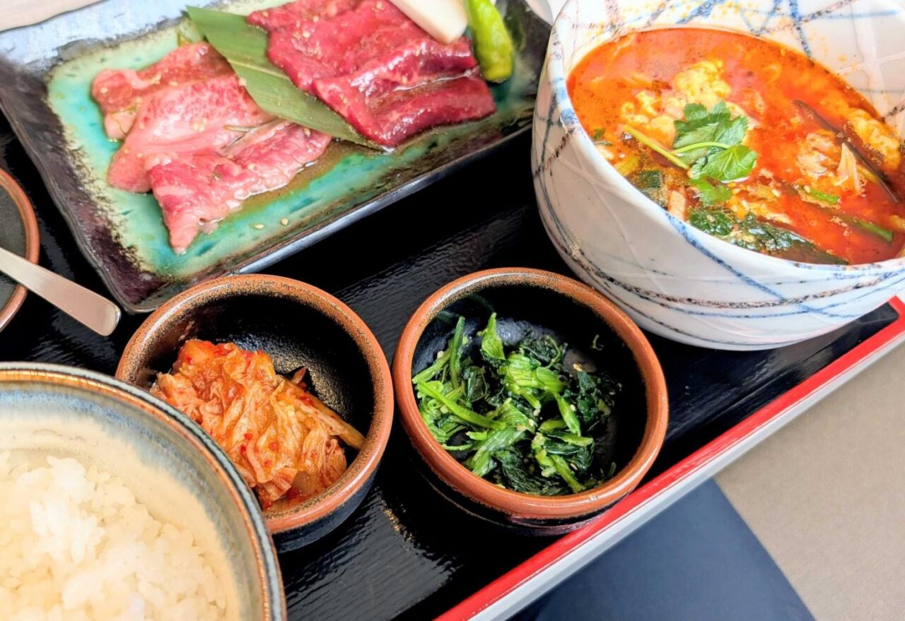 3種の焼肉盛合せ「焼肉中皿」がカップルや少人数での食事には、ちょうどいいかもしれません。厳選した焼肉の組み合わせの「焼肉中皿」と、ビビンバやおつまみなどを注文したら、それだけでもちょっと華やぐテーブルになりそうです。